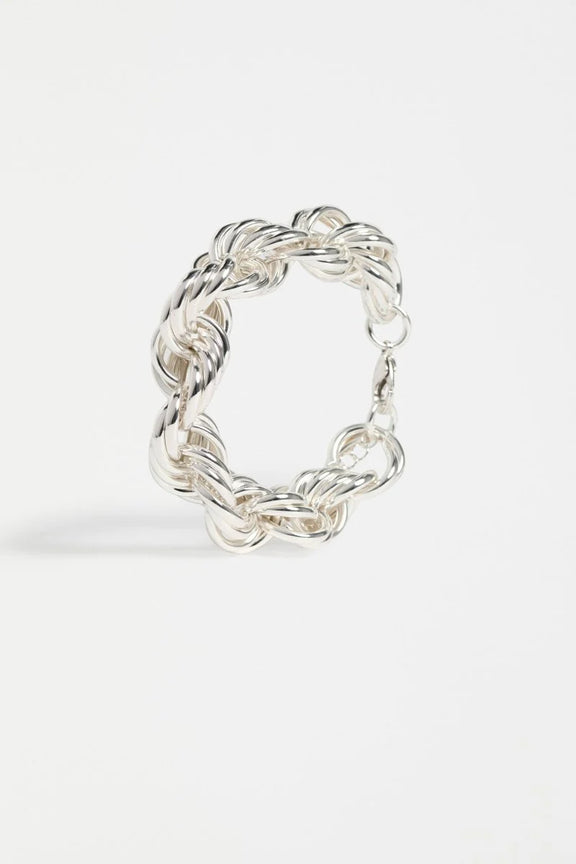 The Reppen Bracelet is a statement, chunky bracelet style made from layered, interlocking round links creating a unique rope-like pattern. Crafted from brass in two classic metallic colourways, this bracelet adds a touch of edge and glamour to any outfit while coordinating beautifully with the matching Reppen Necklace.