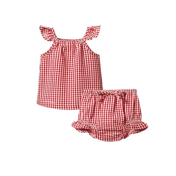 The sweetest set for summer that will make dressing little one easy. Our Petal Set includes a top and bloomers that feature delicate frill detailing. Made from organic cotton seersucker with soft elastic at the front and back neckline of the top and on the bloomer waist, so little one can be comfortable all summer long.